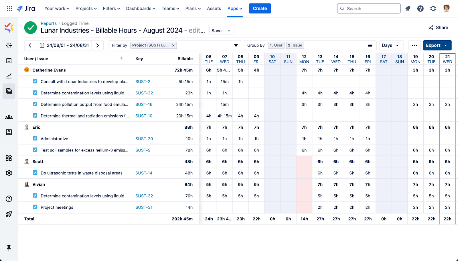 Tempo Timesheets is more than just a time-tracking tool; it’s a comprehensive solution that integrates seamlessly with Jira, providing robust features for managing time, resources, and costs. Here are some key benefits: