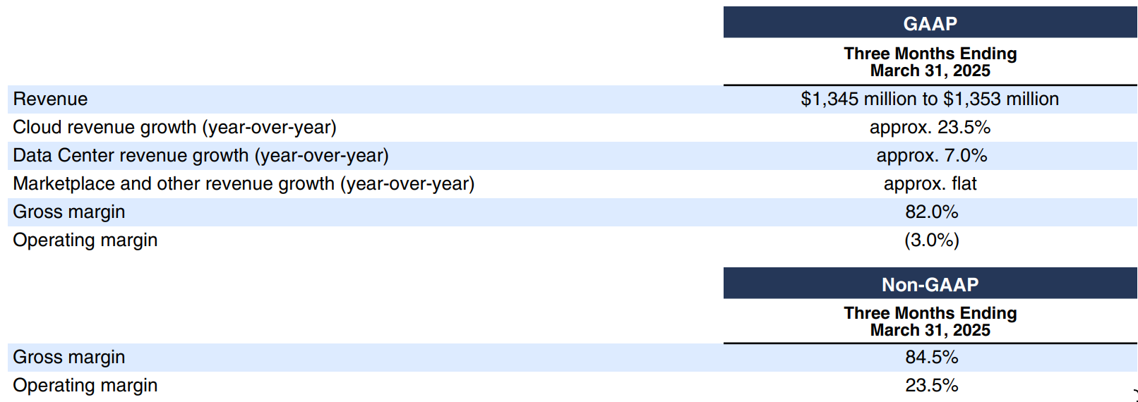 We expect GAAP gross margin to be in the range of 81.5% to 82.0% and non-GAAP gross margin to be in the range of 84.0% to 84.5% in FY25. Our guidance assumes improvements in cloud gross margin will offset the negative impact of revenue mix shift to cloud.