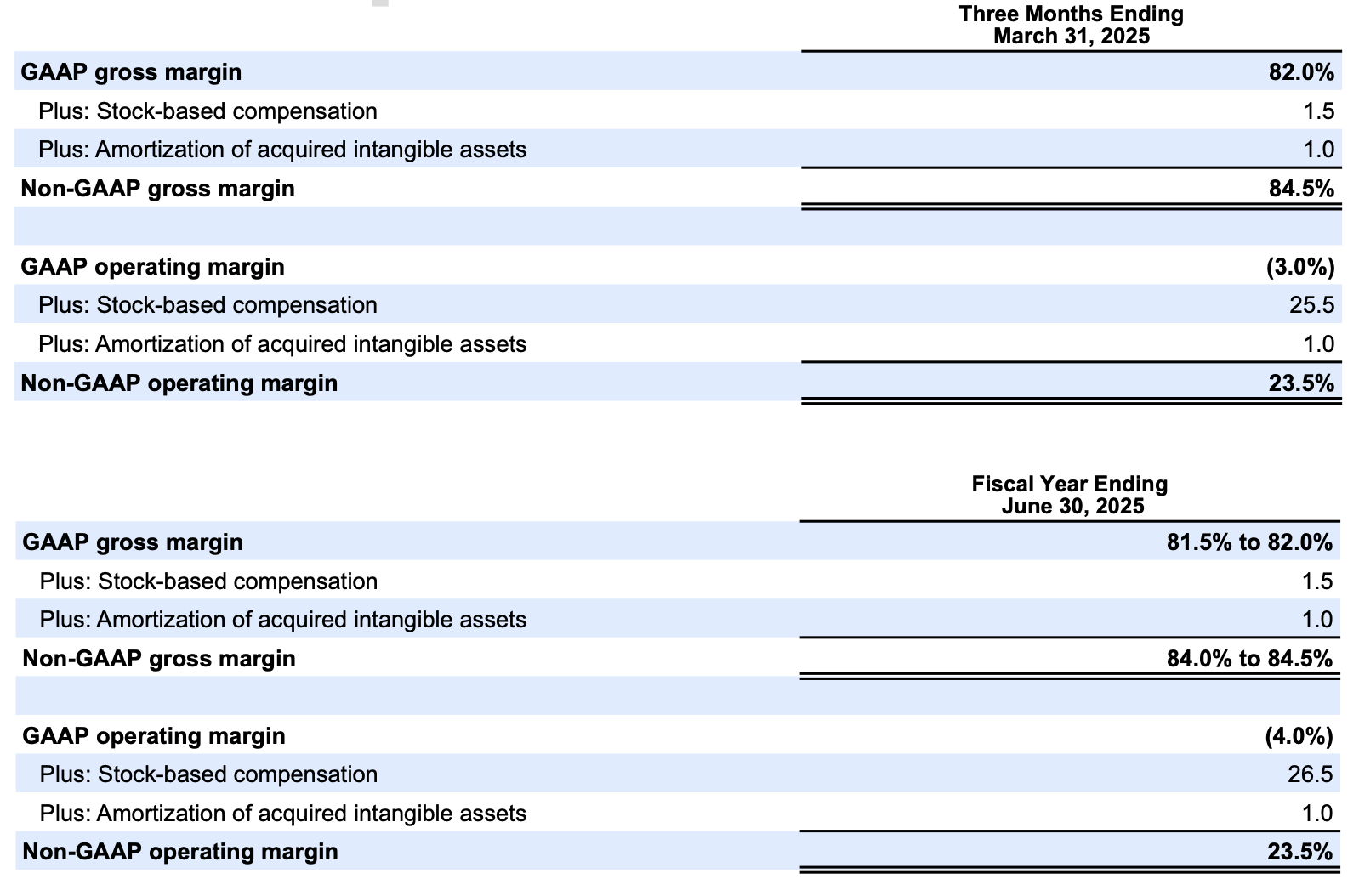 We expect GAAP operating margin to be approximately (4.0%) and non-GAAP operating margin to be approximately 23.5% in FY25.