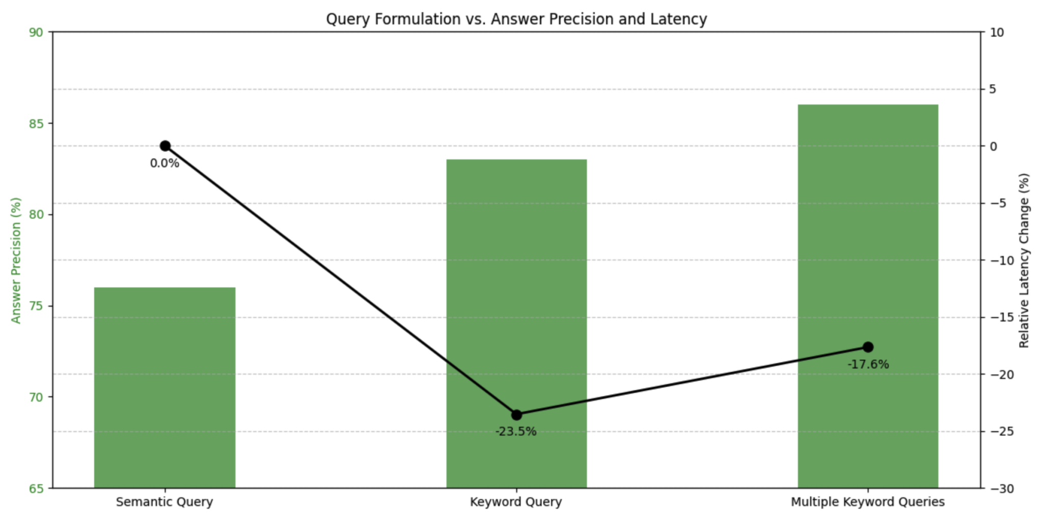 We’ve seen a higher answer precision (+10%) and faster latency (-17%) with the query optimization for an internal search QnA query set.