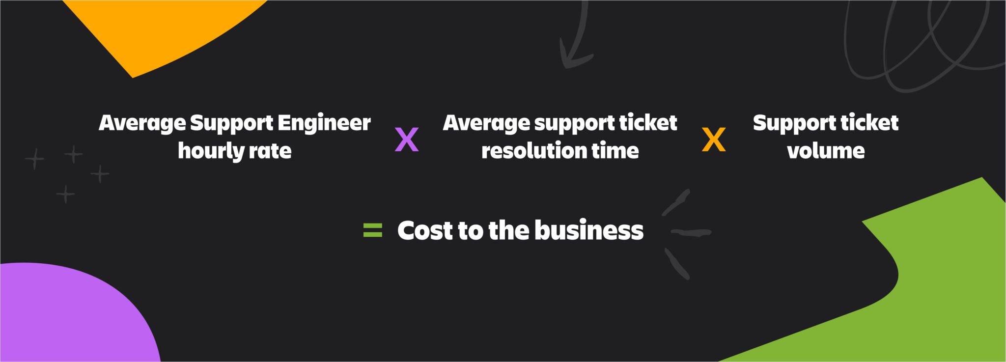 Bec and I believed that quantifying the support effort would help the leadership team understand the problem better. Together, we came up with the below metric to help us calculate the estimated cost to Atlassian: