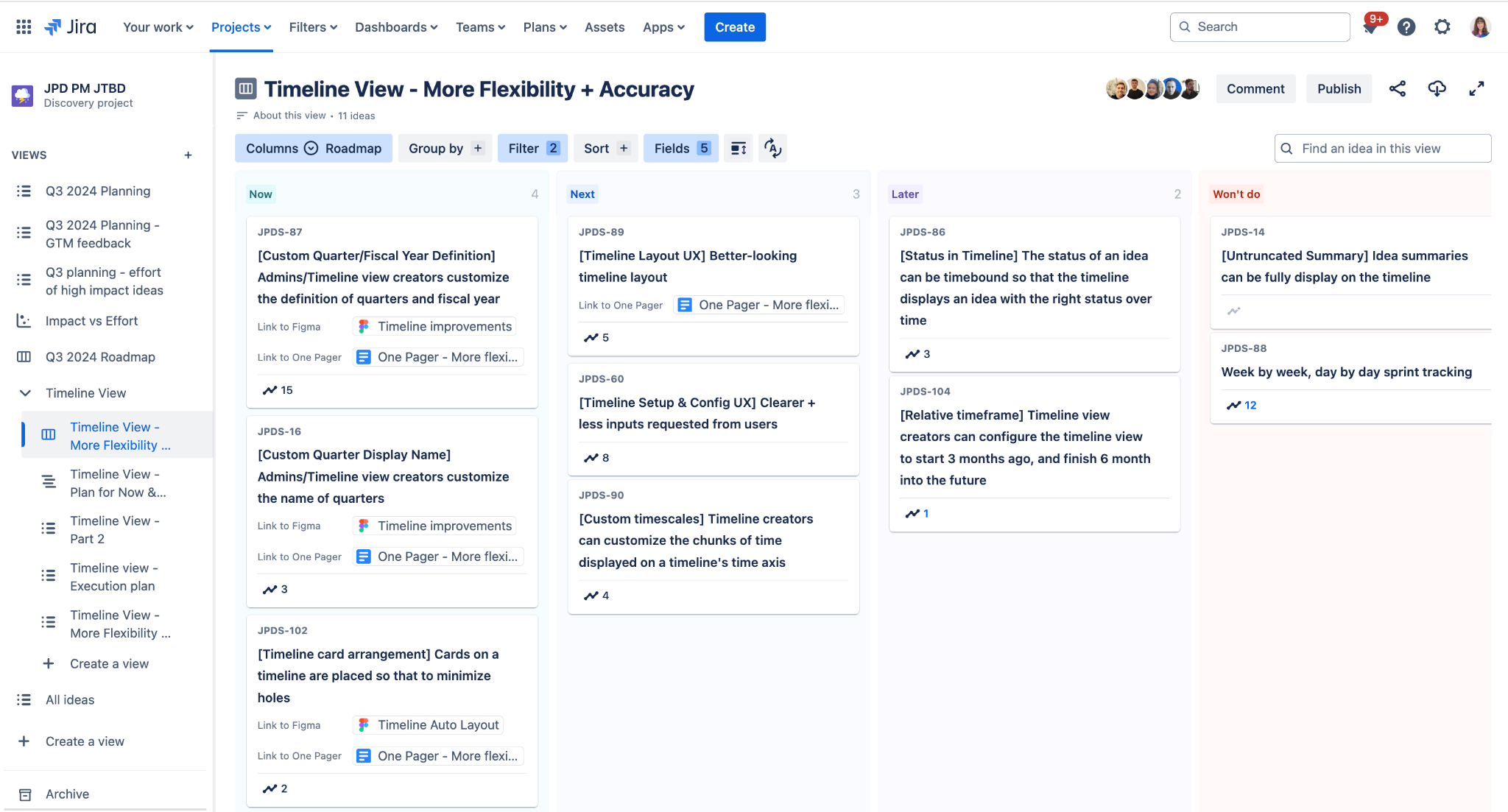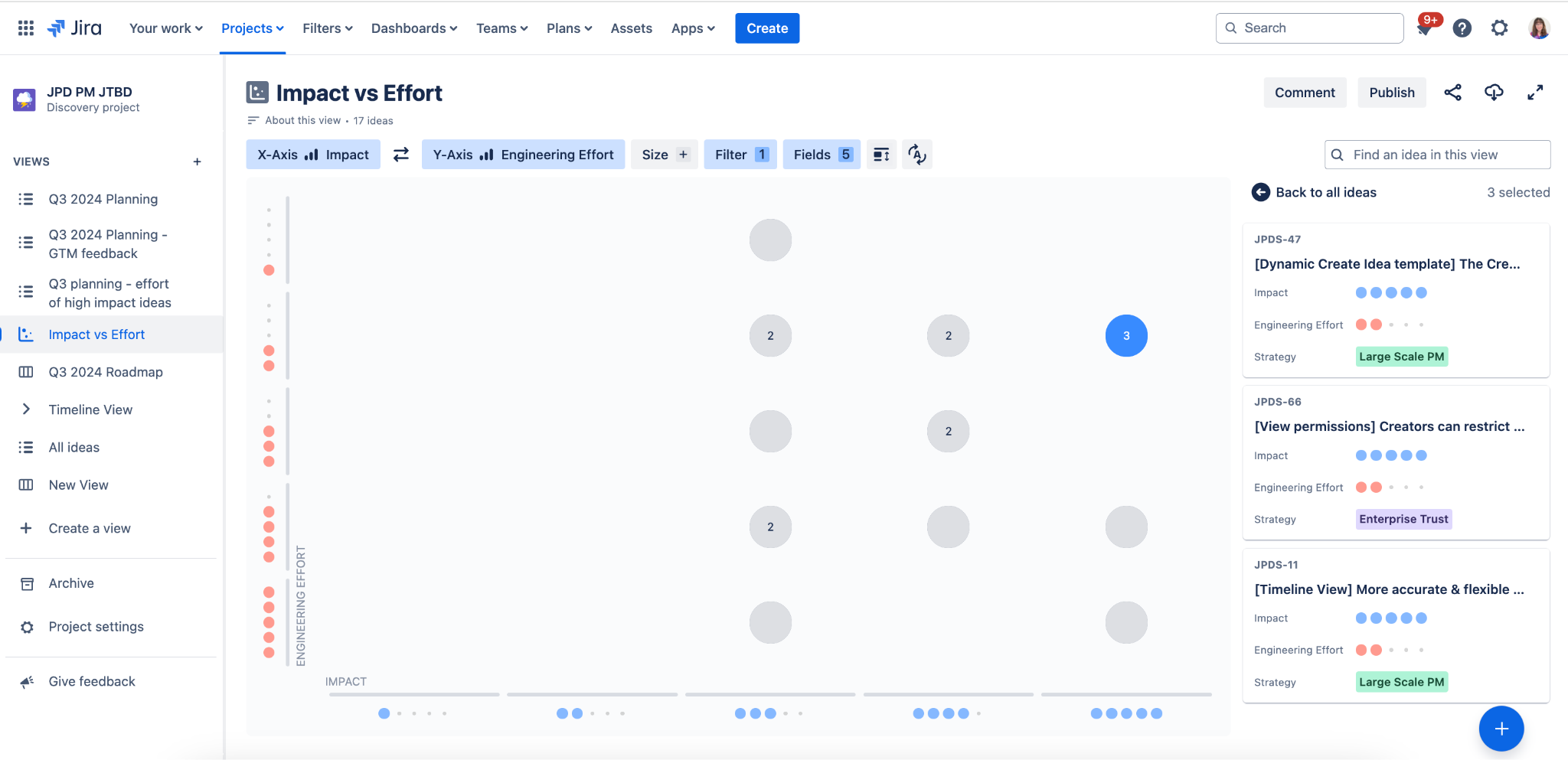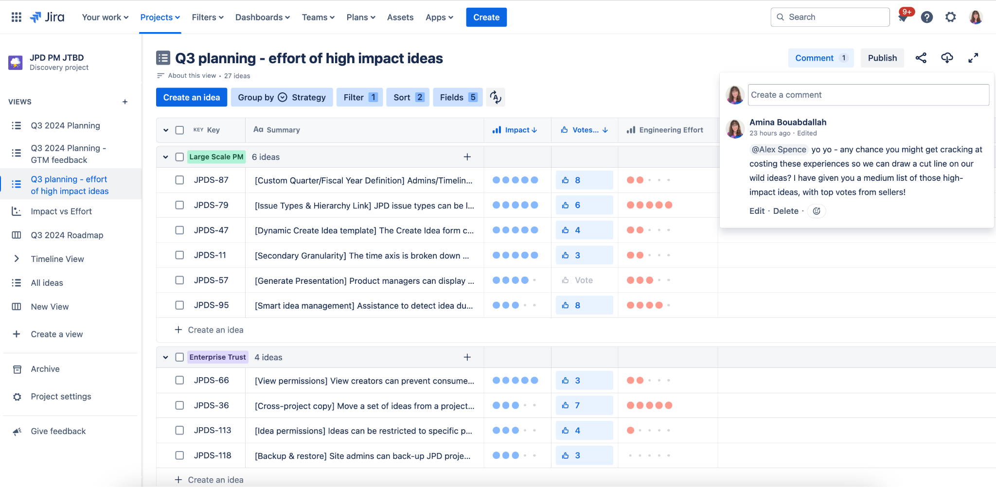 By using Jira Product Discovery while maintaining a clear line of communication with customer-facing teams, we can filter, rank, and tie-break ideas so that it is easier to differentiate between medium and high-impact ones. It’s crucial for product managers to continuously engage with these customer-facing teams, not just to close deals on the products, but to maintain partnerships to keep us in the loop with their honest feedback.