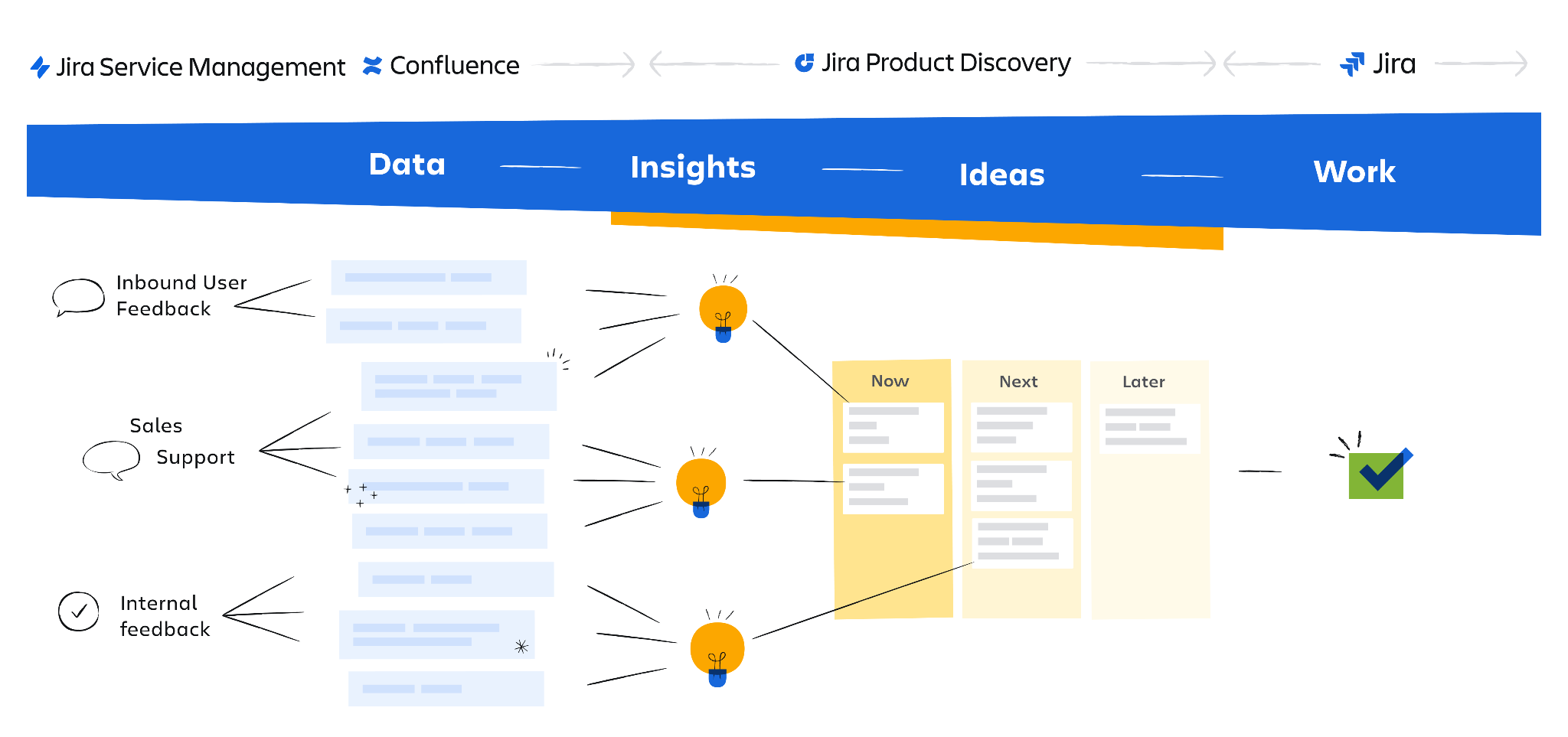 Building the right thing requires a clear process in coordination with the right tools to guide product discovery, development, and delivery. Atlassian works across our own suite to do our best to build the most useful products for our customers: