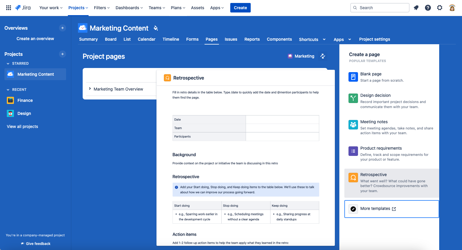 Every project manager knows that project management goes beyond mere checklists. Usually, there is actual work behind that task and that has to be located somewhere – and ideally, easy to find! Jira Work Management makes the connection between tasks and context easy with pages created in Confluence directly from Jira. As a project manager, you’ll love how how you can connect every Jira Work Management task to pages, docs, and sheets, contextualizing tasks and making sure that every to-do aligns with the broader project narrative.