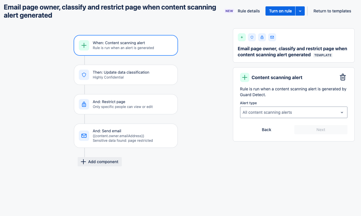 Guard Premium helps users rapidly respond when sensitive data is discovered in an unprotected state. You have the option to create your own rule using the new content scanning alert trigger or explore pre-existing templates to kickstart your process. Continue to follow Atlassian Automation blogs and Community posts for more Guard Premium Automation use cases coming soon.