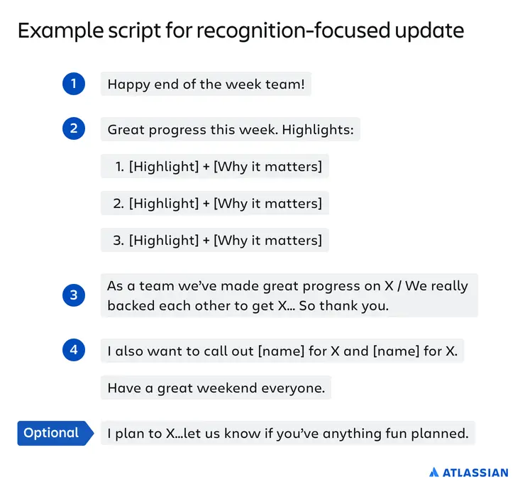 - Two quick weekly updates would help teams feel more connected to their manager.