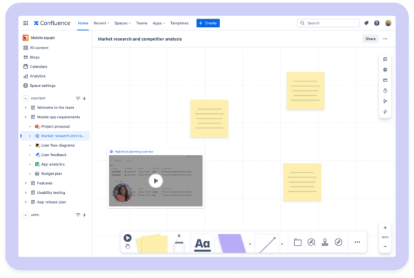 See it in practice: Atlassian supports the journey from idea to action with tools like Confluence’s whiteboards for brainstorming, ready-made templates for project planning, and Loom integration for searchable video discussions. By capturing knowledge in various formats, teams stay seamlessly connected across Atlassian and third-party tools.